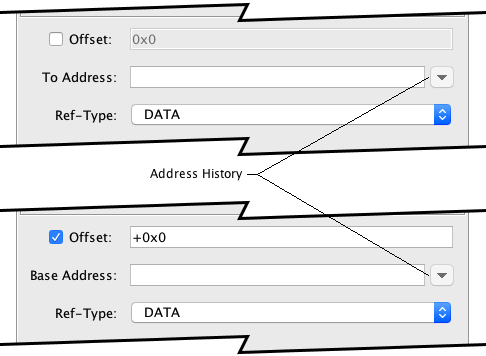 If the Offset checkbox is "checked", this memory reference will be treated as an Offset Reference relative to the specified Base Address. The actual "to" address will be computed by adding the specified signed Offset value to the Base Address. The number format is assumed to be decimal unless the "0x" prefix is used when entering a Hex value.