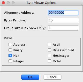 icon to bring up the Byte Viewer Options dialog. Select the formats that you want and press the OK button.