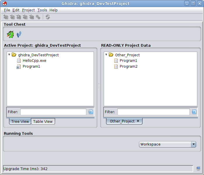 and restoring a project will show up only in the Ghidra Project window, even though the plugins