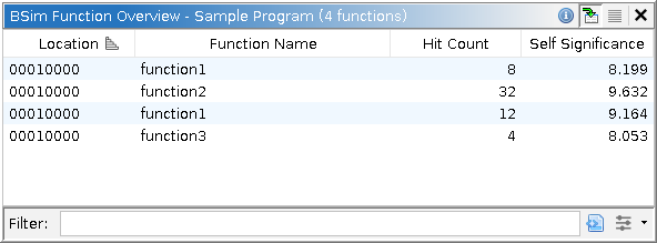 After performing a BSim Overview Query, the BSim Function Overview window will appear.