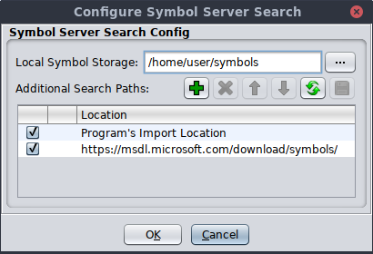 Allows the user to configure the location where PDB symbol files are stored and additional locations to search for existing PDB files.