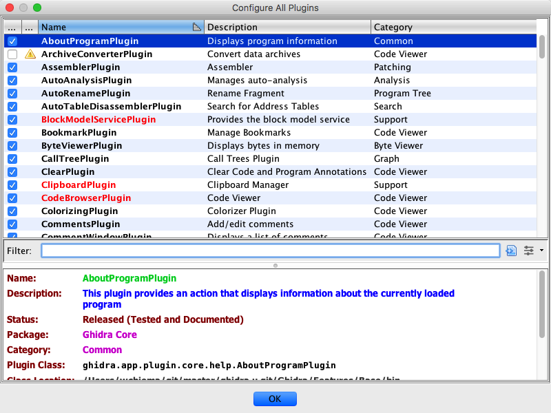 - Category for where the plugin belongs functionally, e.g., it works in the context of a Code Browser or Byte Viewer, etc.