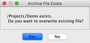 - If the specified archive already exists the Archive File Exists dialog is