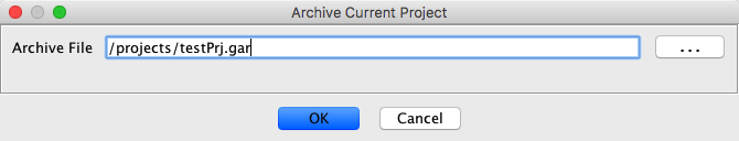 project is to be saved. The default location of the archive file is your projects