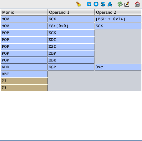 Color-coding is used to indicate the code unit type. Instructions are displayed in blue, data items are tan.