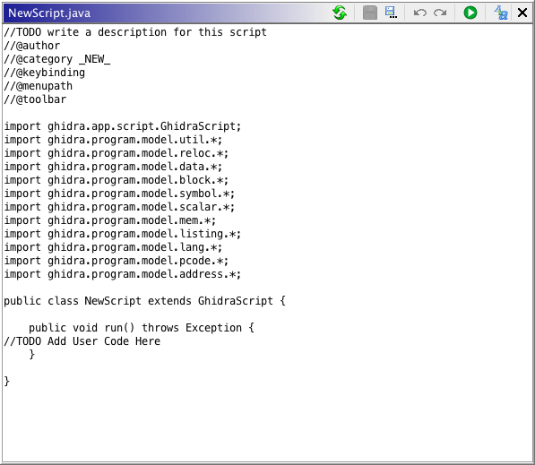 This tag indicates a top-level toolbar button should be created to launch this script and the image to use for the button. The Script Manager will attempt to locate the image in the Script Directories and then in the Ghidra installation. If the image does not exists, a toolbar button will be created using the default Ghidra image.