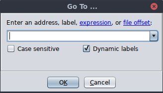 - Enter either an address, label, expression, or file offset as specified below and press "OK"