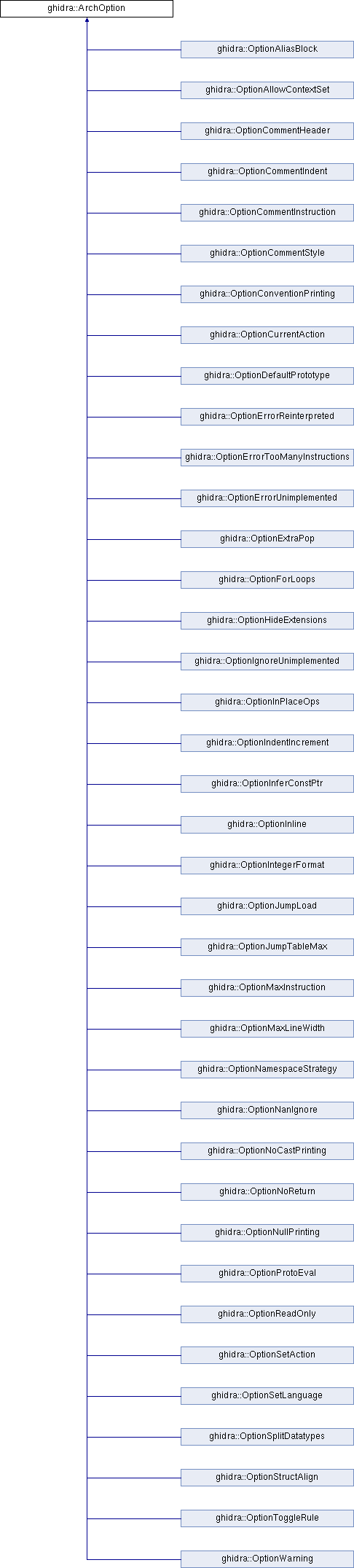 Implemented in ghidra::OptionExtraPop, ghidra::OptionReadOnly, ghidra::OptionDefaultPrototype, ghidra::OptionInferConstPtr, ghidra::OptionForLoops, ghidra::OptionInline, ghidra::OptionNoReturn, ghidra::OptionStructAlign, ghidra::OptionWarning, ghidra::OptionNullPrinting, ghidra::OptionInPlaceOps, ghidra::OptionConventionPrinting, ghidra::OptionNoCastPrinting, ghidra::OptionHideExtensions, ghidra::OptionMaxLineWidth, ghidra::OptionIndentIncrement, ghidra::OptionCommentIndent, ghidra::OptionCommentStyle, ghidra::OptionCommentHeader, ghidra::OptionCommentInstruction, ghidra::OptionIntegerFormat, ghidra::OptionSetAction, ghidra::OptionCurrentAction, ghidra::OptionAllowContextSet, ghidra::OptionIgnoreUnimplemented, ghidra::OptionErrorUnimplemented, ghidra::OptionErrorReinterpreted, ghidra::OptionErrorTooManyInstructions, ghidra::OptionProtoEval, ghidra::OptionSetLanguage, ghidra::OptionJumpTableMax, ghidra::OptionJumpLoad, ghidra::OptionToggleRule, ghidra::OptionAliasBlock, ghidra::OptionMaxInstruction, ghidra::OptionNamespaceStrategy, ghidra::OptionSplitDatatypes, and ghidra::OptionNanIgnore.