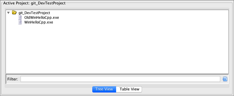 The Active Project view shows your programs and datatype archives in a tree view or a table view. The tree view is useful for organizing your files into folders and sub-folders. The table view is useful for sorting all your files on some particular attribute such as size, processor, or modification date. In either view, you open and perform various actions on program files or datatype archives.