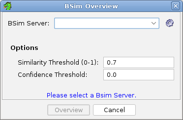 To start the overview task, select a predefined BSim database server from the combo box or