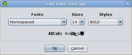 Any change you make in the editor is applied to the application immediately. If you press the OK button, the change will stay. If you press the Cancel button, the font will revert back to the original font.
