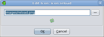 The Edit Icon dialog has a drop-down text field where you can find any existing icon on the classpath. If you want to choose an Icon from the file system, press the ... button and a File Chooser will appear, allowing you to pick an icon file from anywhere on the filesystem. Any change you make in the editor is applied to the application immediately. If you press the OK button, the change will stay. If you press the Cancel button, the icon will revert back to the original icon.