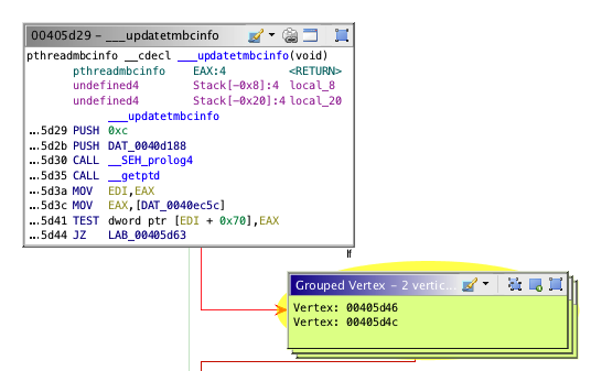 This action will also appear in the vertex containing the function entry point, for convenience.